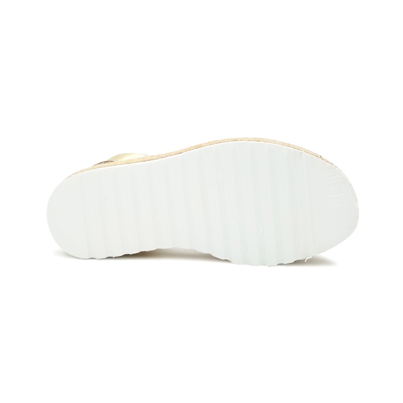 Crossed top avarcas in leather by C. Ortuño, with esparto grass and rubber platform of 3 cm.