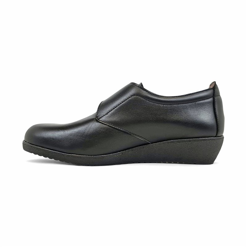 The design of these women’s wedge shoes blends a sober yet stylish look that suits both office settings and more relaxed moments. The soft leather upper delivers a refined and pleasant touch, while the 4 cm wedge helps you gain height without sacrificing stability. The velcro closure enables a simple and quick adjustment, making them a smart choice for those seeking comfortable footwear for all-day wear.