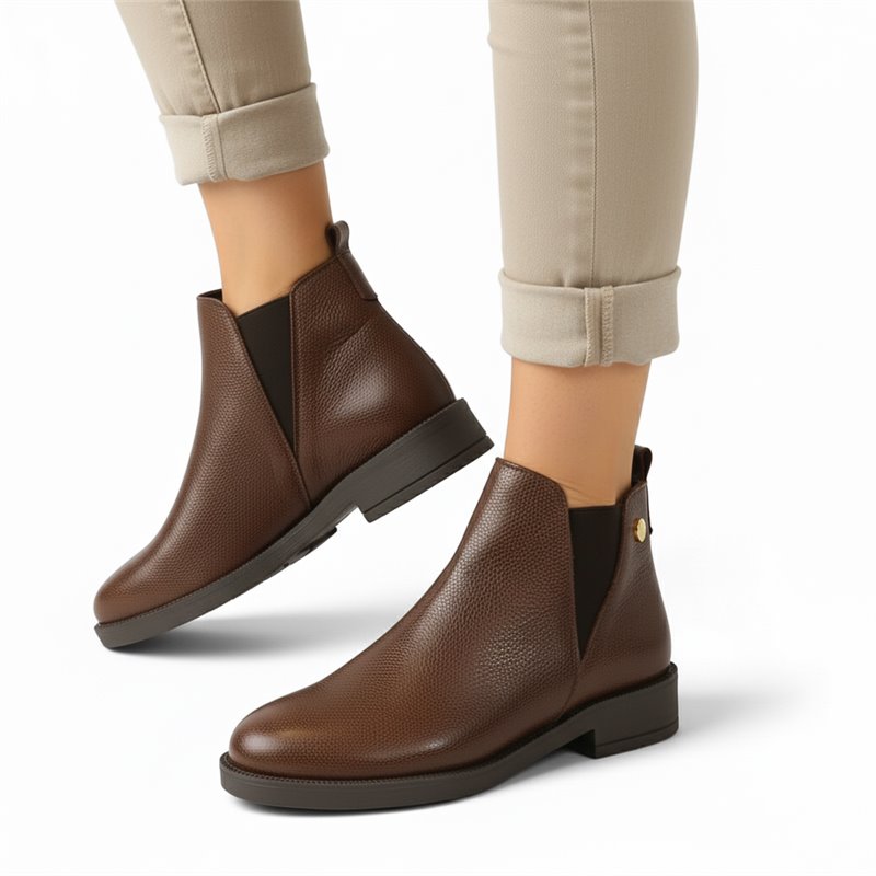 El corte tipo Chelsea, con su silueta limpia y elástico lateral, aporta un estilo moderno que se adapta tanto al entorno urbano como a situaciones más relajadas. Los botines de piel napa ofrecen una apariencia elegante sin resultar rígidos, lo que permite integrarlos fácilmente en looks con vestidos, faldas midi o vaqueros oscuros. Su altura de tacón de 3 cm añade un ligero impulso manteniendo estabilidad durante todo el día.