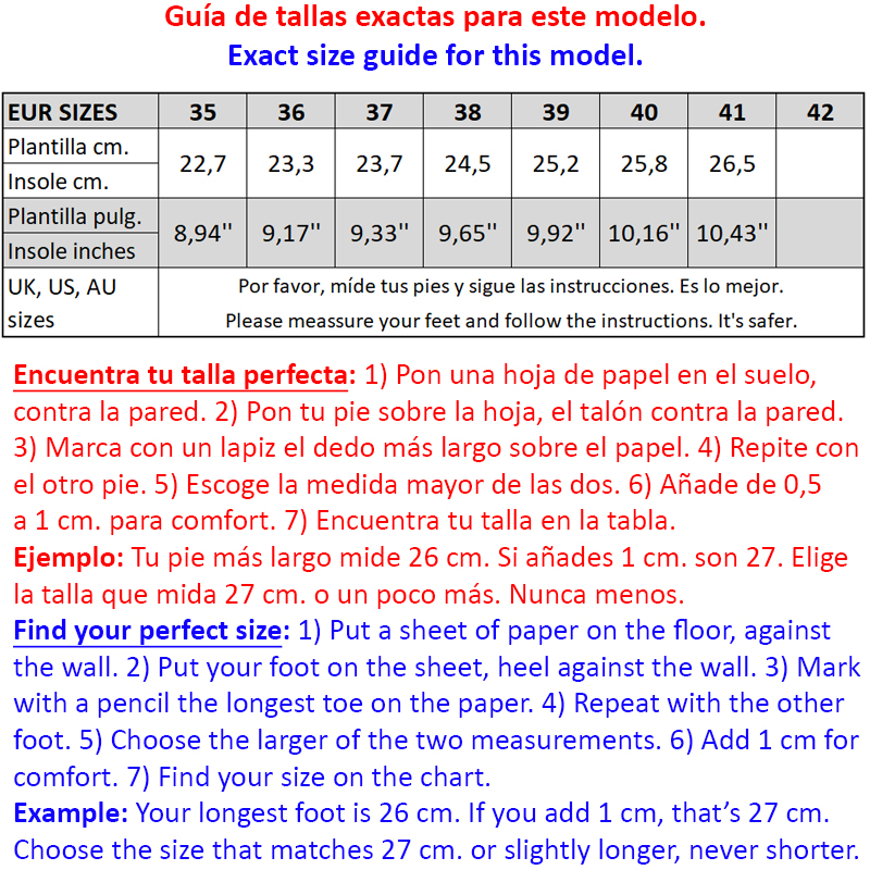 Si te vas a poner en contacto con nosotros para preguntarnos, te recomendamos medir tu pie antes. En esta guía te decimos cómo: ¿CÓMO SÉ CUÁL ES MI TALLA?