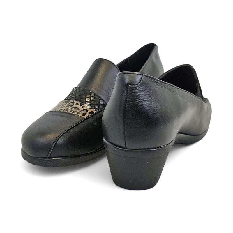 El modelo 5712 destaca por su corte tipo mocasín con elásticos laterales, que aportan un toque moderno y práctico. El detalle animal print en el empeine añade un contraste sutil que realza el diseño sin perder su sobriedad. Con una cuña de 4 cm, estos zapatos ofrecen una ligera elevación que estiliza sin renunciar al confort. Son una opción perfecta tanto para looks informales como para outfits de oficina, combinando fácilmente con vaqueros, pantalones o faldas midi.