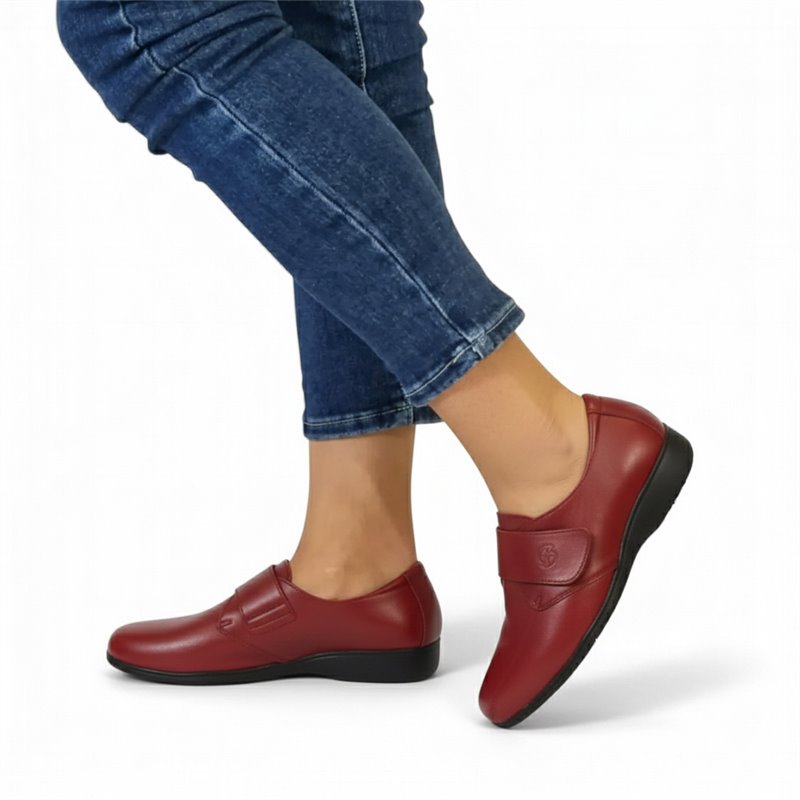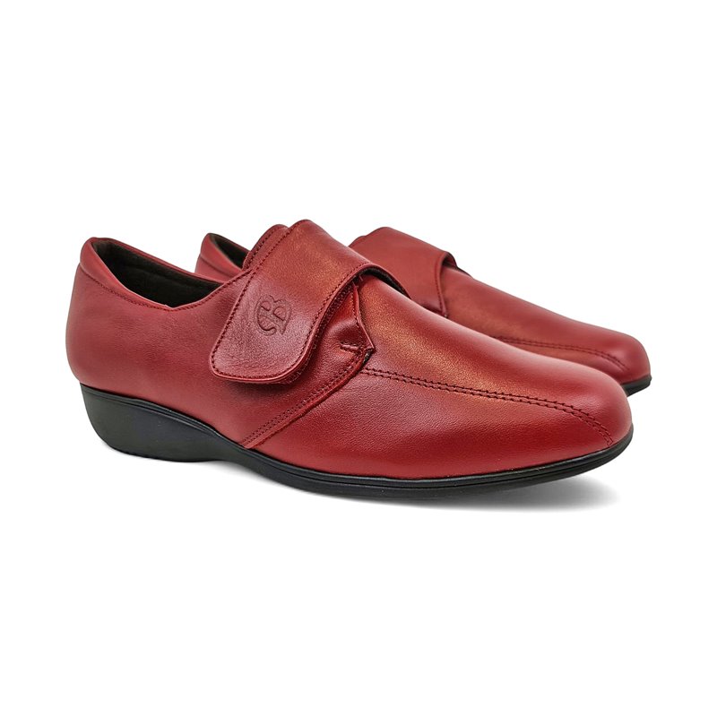 Su estética sencilla y práctica lo convierte en un calzado versátil, perfecto para el día a día, el trabajo o paseos. El color rojo añade un toque moderno y discreto que combina con prendas neutras, pantalones clásicos o conjuntos informales.