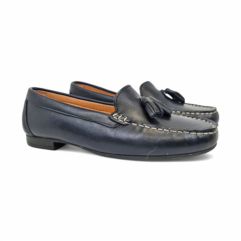 Este mocasín de piel napa es la apuesta ideal de elegancia cómoda para la mujer que busca un calzado versátil. Con su acabado en marino y detalle de borlas, aporta un toque de distinción a tu día a día sin renunciar a la sensación de confort que ofrece un diseño pensado para caminar fácilmente.