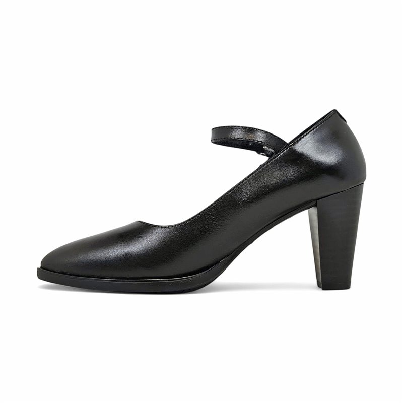 El diseño tipo merceditas con pulsera al tobillo aporta un toque clásico y femenino que se adapta tanto a eventos formales como a salidas casuales. La punta fina pero ligeramente redondeada equilibra sofisticación y comodidad. Gracias al color negro, estos zapatos de salón en piel napa combinan con múltiples estilismos: un vestido de cóctel, una falda midi o un conjunto pantalón elegante.