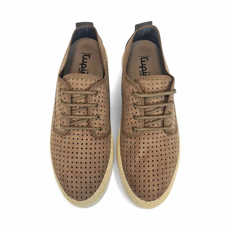 El diseño tipo blucher con cordones añade estructura y estilo, reforzado por detalles como la talonera de piel en contraste y una tira trasera que facilita el calce. Perfectas para combinar con bermudas, jeans o lino, estas zapatillas elevan cualquier look casual veraniego con naturalidad y distinción.
